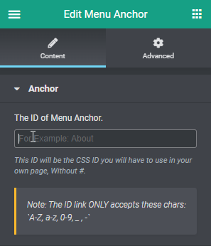 3. Vul bij ‘The ID of Menu Anchor’ de gewenste naam in;