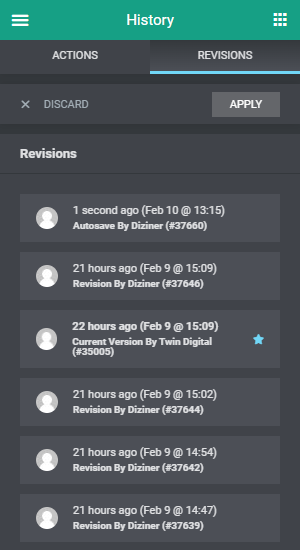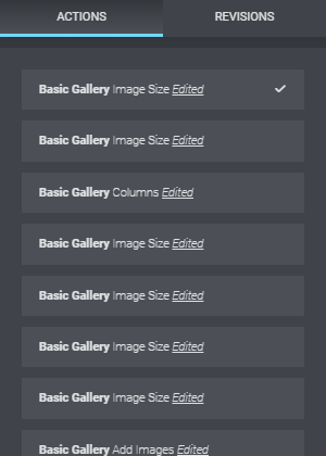 Via de acties en revisies knop kun je eenvoudig uitgevoerde acties ongedaan maken of oude versies van de pagina terugzetten. Je vind de acties en revisieknop in de onderste menubalk;