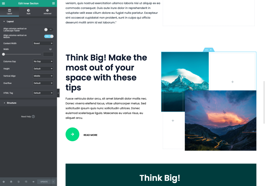 4. Nu kan het lastig zijn om de onderliggende sectie te selecteren. Wil je deze bewerken kun je dit het beste doen door de navigator te gebruiken. Je leest hier meer over in het hoofdstuk Tips & Tricks.