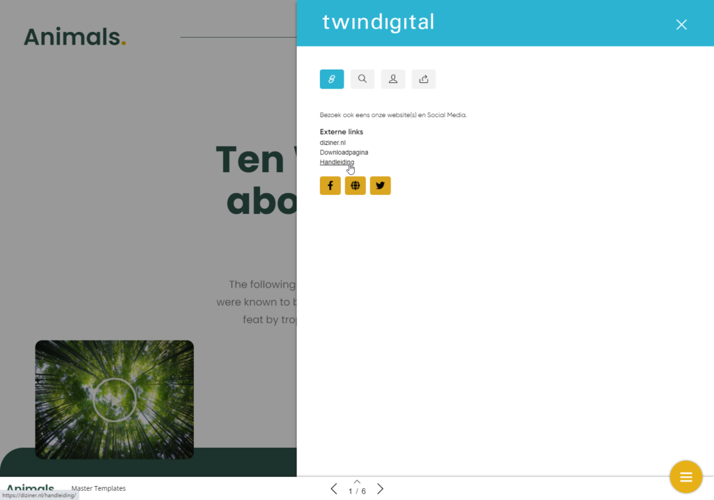 In het algemene menu dat aan de rechterkant openschuift kunnen externe links worden toegevoegd, bijvoorbeeld een link naar de website van jullie organisatie, een link naar pagina waar een abonnement afgenomen kan worden of een link naar een inschrijfformulier voor een nieuwsbrief. Deze links stel je in via de customizer.