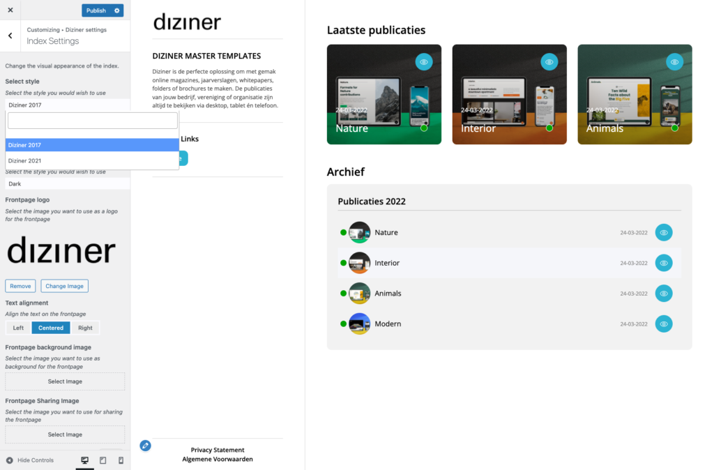 4. Voor de nieuwe weergave zet je onder Select style Diziner 2017 om in Diziner 2021;
