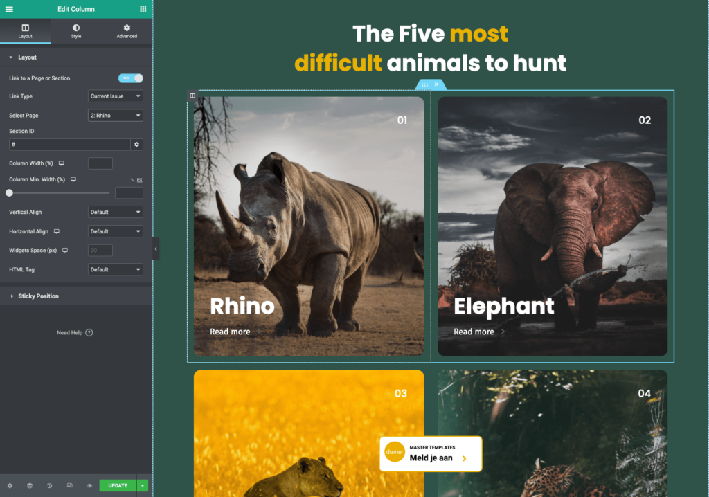 Het is mogelijk om een kolom naar een bepaalde pagina te laten doorverwijzen. Dit is handig omdat mensen vaak gewend zijn dat wanneer je op de afbeelding van een stukje tekst klikt, je ook doorverwezen wordt.