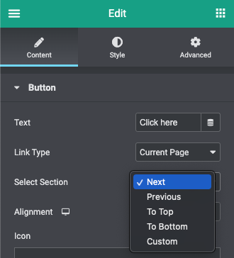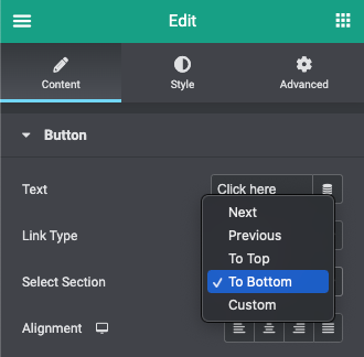 5. Wanneer je ‘To Bottom’ selecteert bij ‘Select Section’ navigeert de link automatisch het onderste stuk van de pagina;