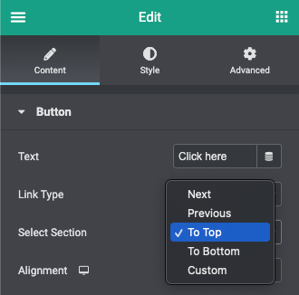 4. Wanneer je ‘To Top’ selecteert bij ‘Select Section’ navigeert de link automatisch het bovenste stuk van de pagina;