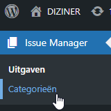 1. Om een publicatie te categoriseren, maak je eerst de gewenste categorie(ën) aan. Navigeer hiervoor onder Issue manager naar categorieën;