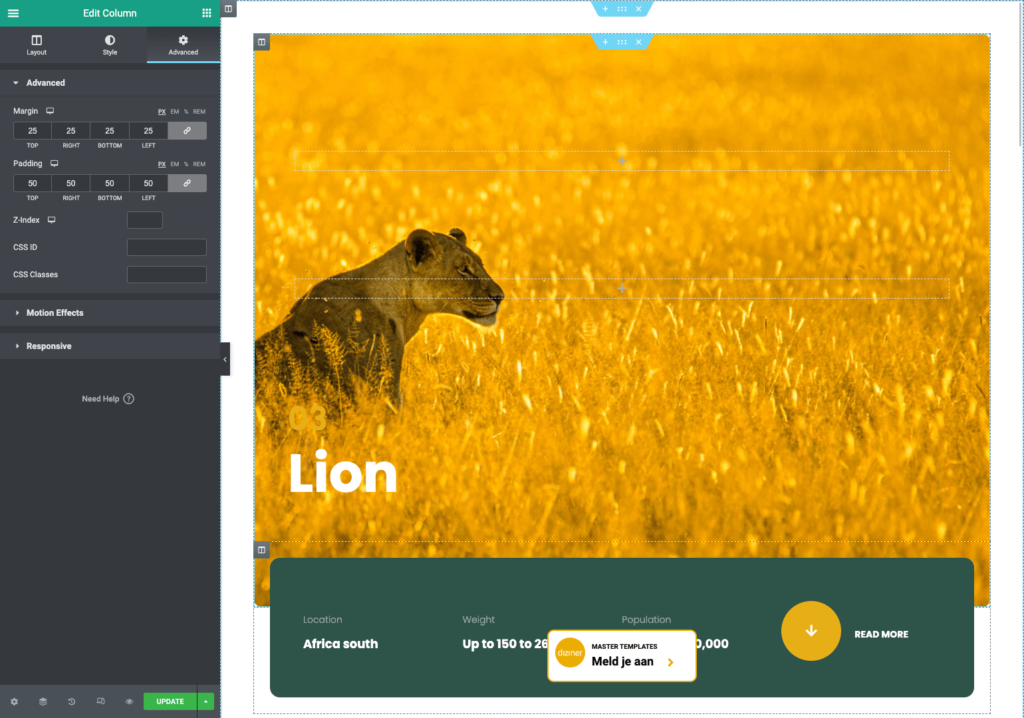 1. Beweeg met je muis over het element waarop je marge wil toevoegen en klik op het grijze icoontje dat in de linkerbovenhoek van het element verschijnt;
