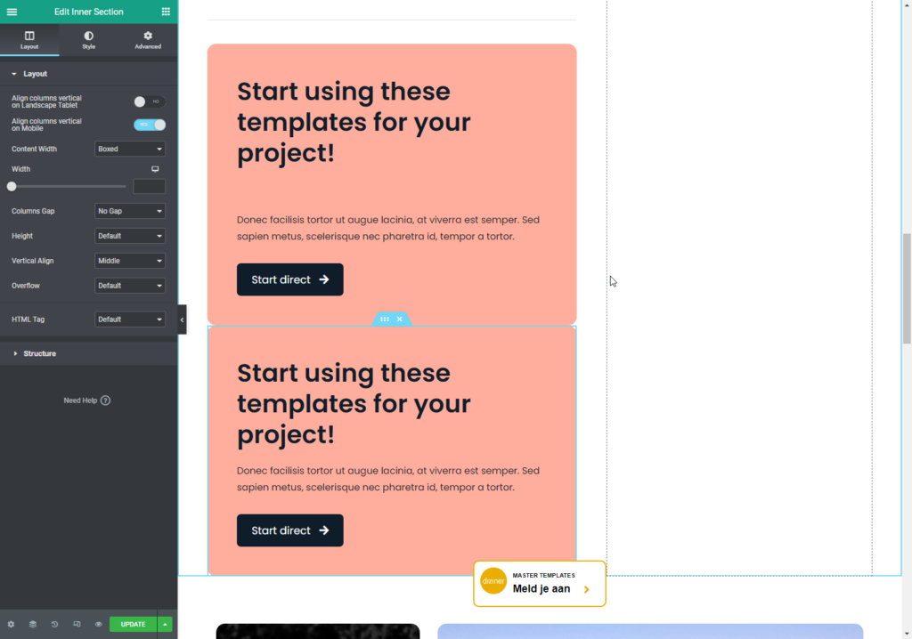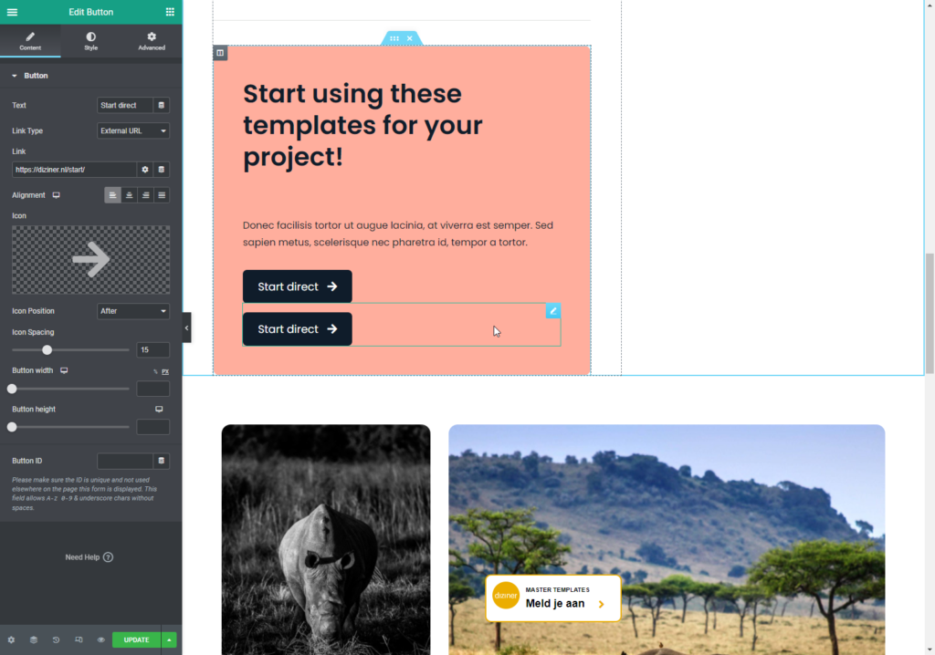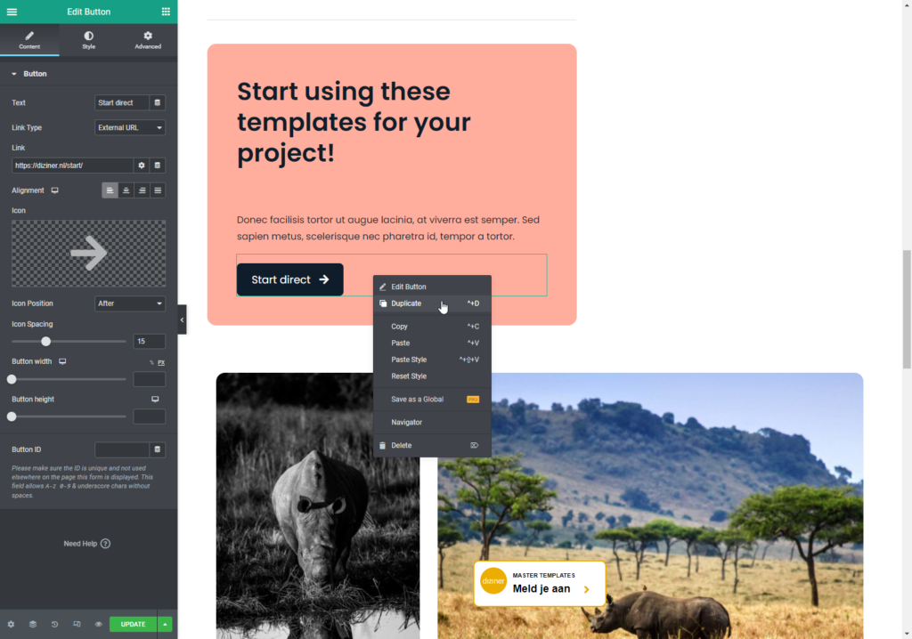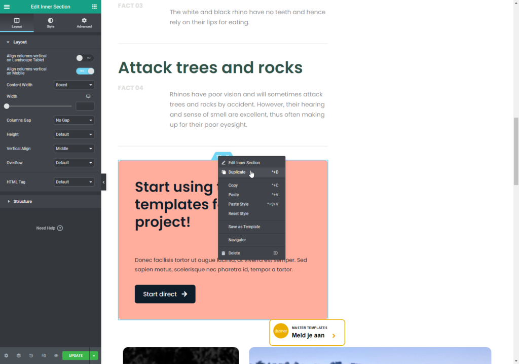 1. Klik met de rechtermuisknop op het blauwe gridicoontje dat verschijnt wanneer je met je muis over het element beweegt en klik vervolgens op Duplicate;