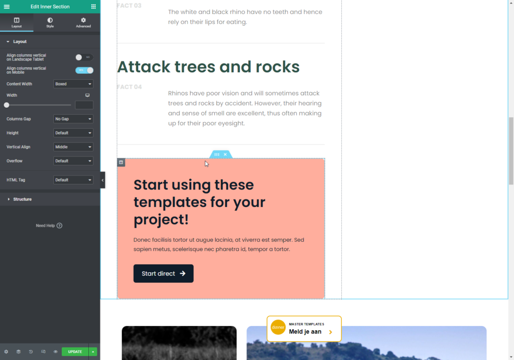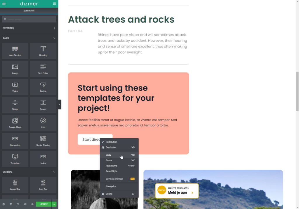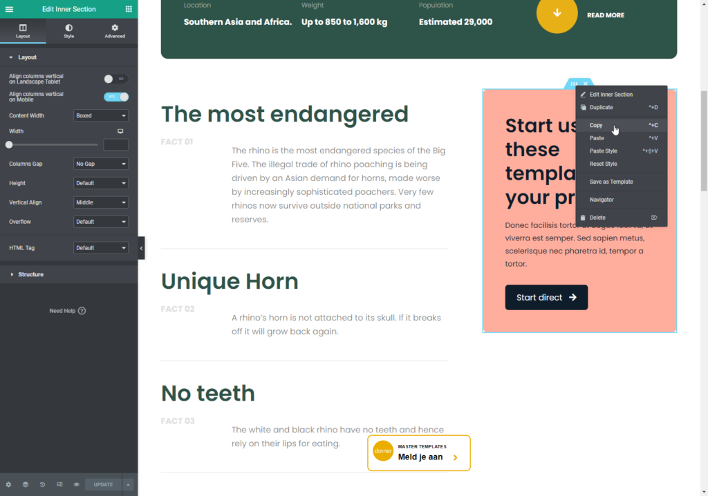 Soms wil je een sectie of elementen hergebruiken dat op een pagina is geplaatst. Dit kan eenvoudig door de ingebouwde kopieer/plak-functie. Je kunt binnen dezelfde pagina elementen en secties kopiëren en plakken, maar het is ook mogelijk een sectie/element van de ene pagina op een andere pagina te plakken.