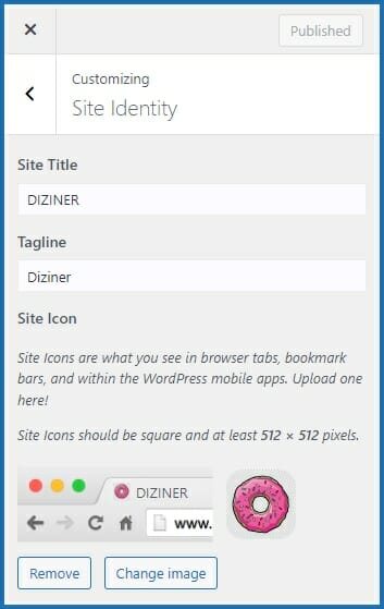 Via Site Identity zet je de puntjes op de i van jouw Diziner omgeving door een Site Title, tagline en Site Icon (favicon) in te stellen. Deze gegevens worden getoond in het tabblad van een browser, wanneer de gebruiker de omgeving heeft geopend.