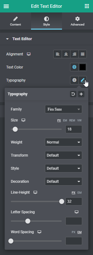 5. Onder het tabje ‘Style’ kun je de uitlijning, tekstkleur en het font instellen.