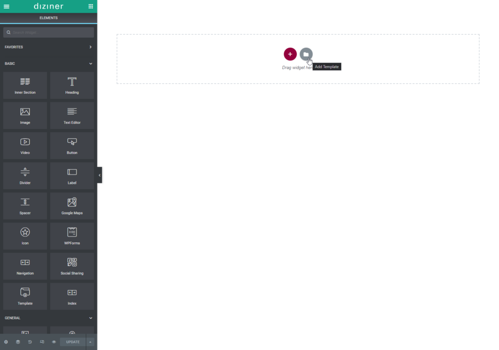 1. Klik in de editor op het grijze icoontje ‘Add template’;