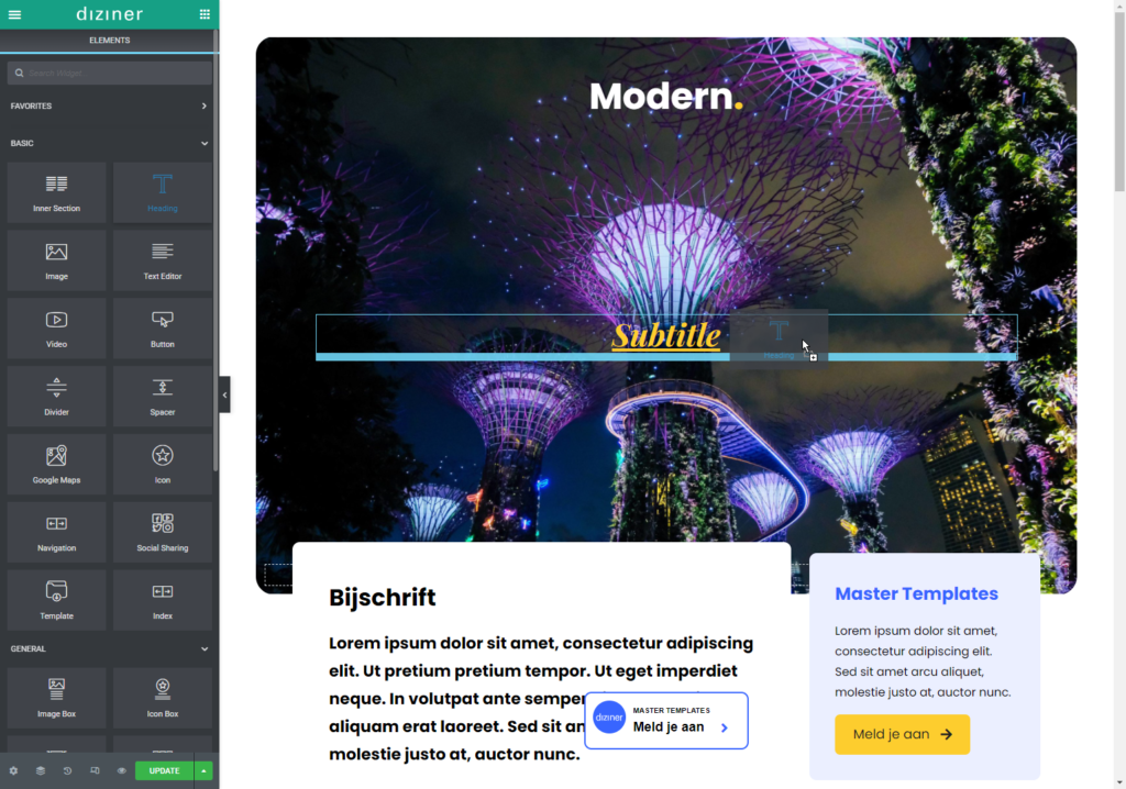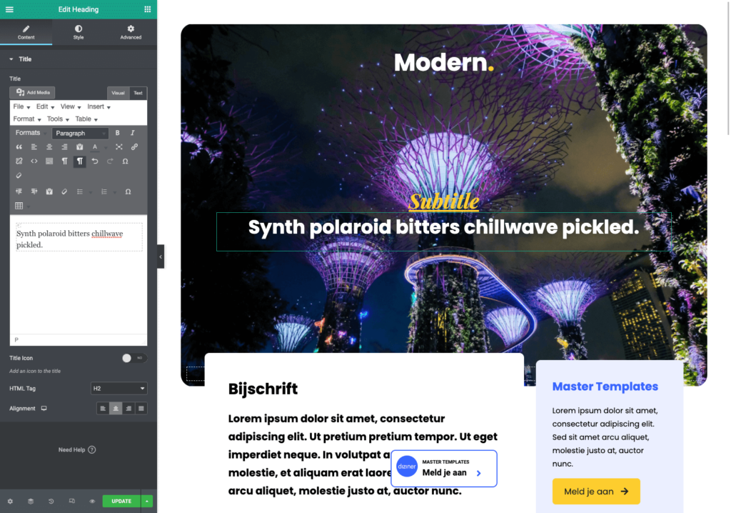 3. Verander de ‘This is heading element’ tekst in de gewenste tekst;