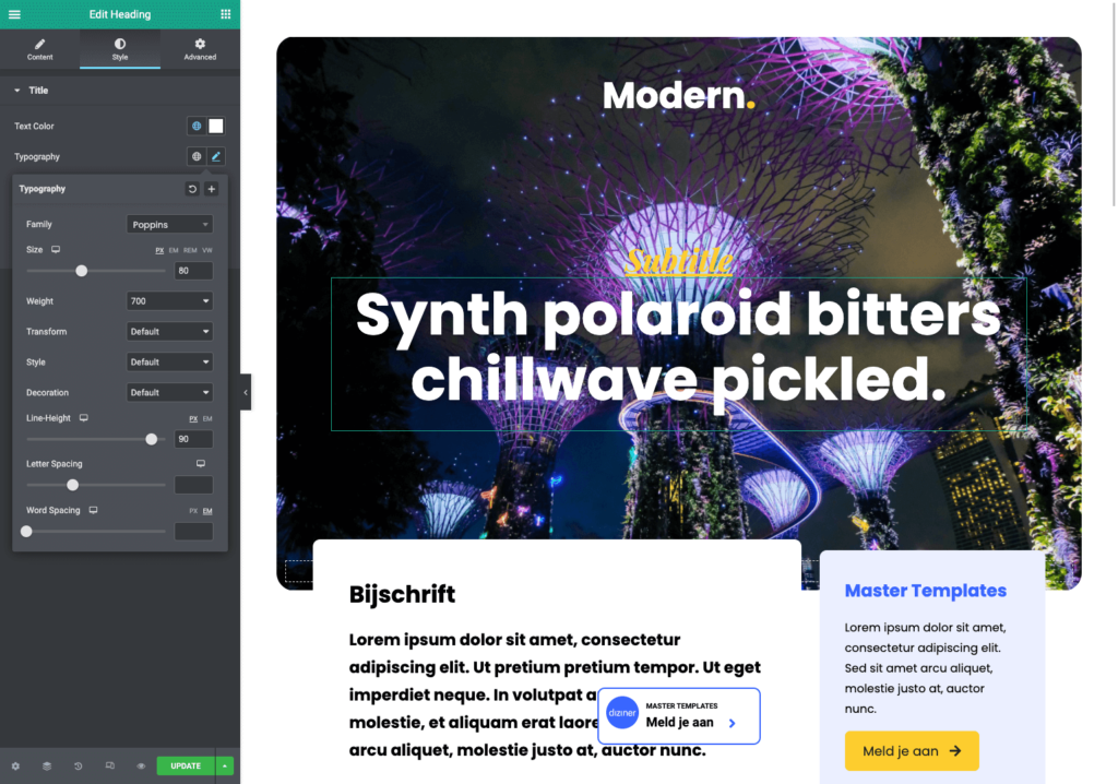 Je kunt via de ‘Style’ tab de kleur, grootte, lettertype etc. van de heading aanpassen.