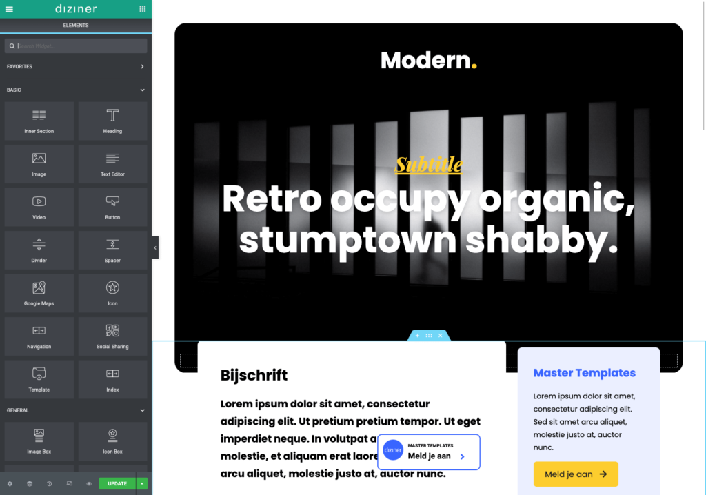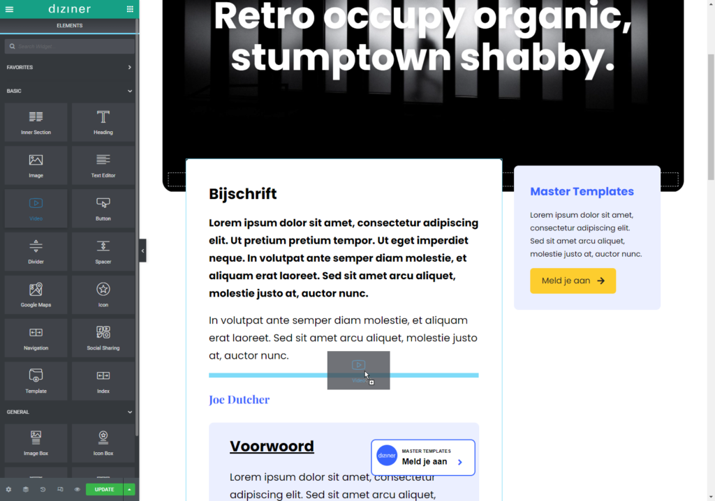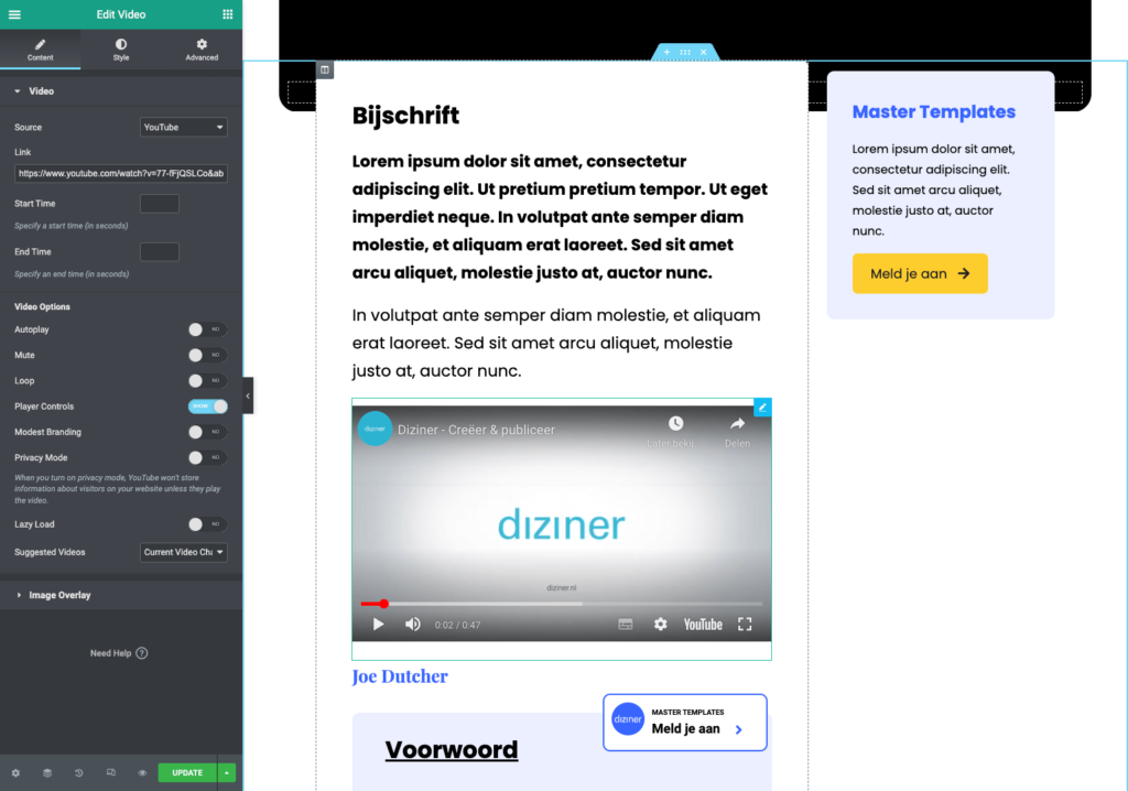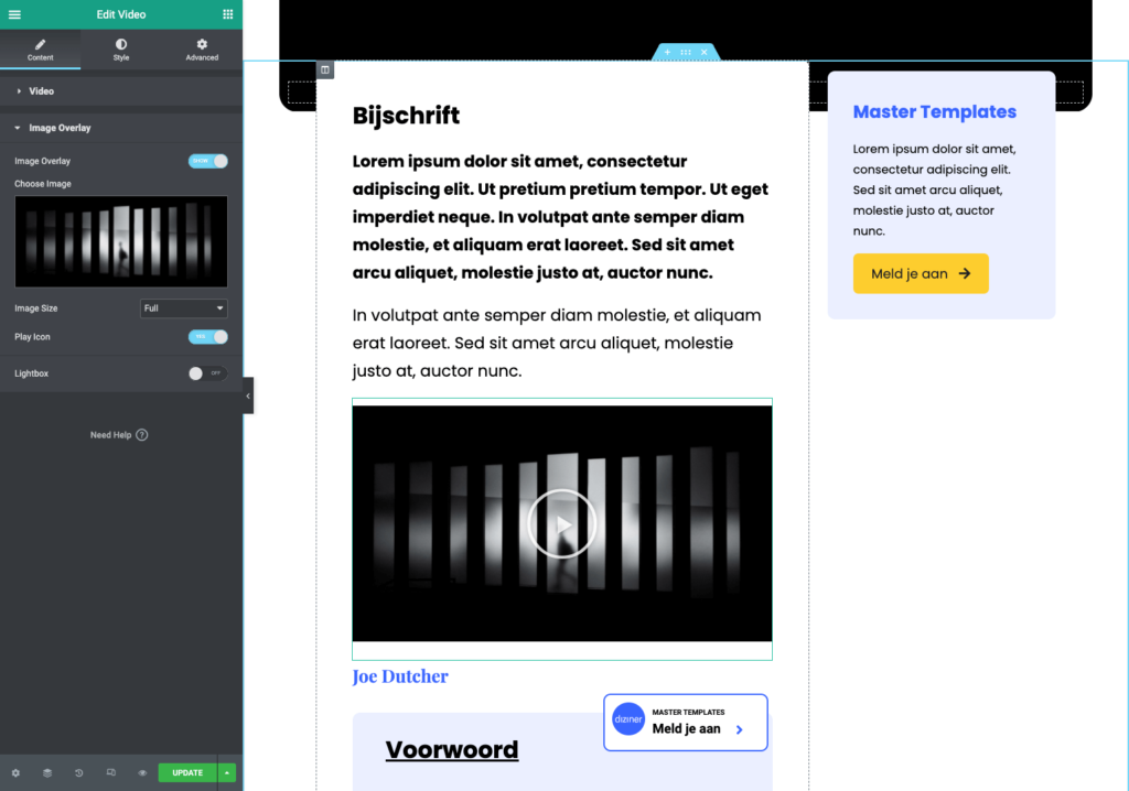2. Drag en drop de video widget naar de gewenste plek in de template;