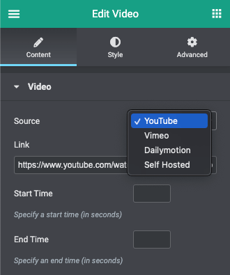 3. Selecteer bij Source het type video. We raden af voor Self Hosted te kiezen, omdat we daarmee niet kunnen garanderen dat de video dan voor alle gebruikers zichtbaar zal zijn;