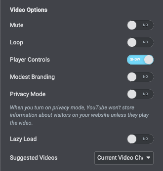 5. Zet onder ‘Video options’ de gewenste video opties aan of uit;